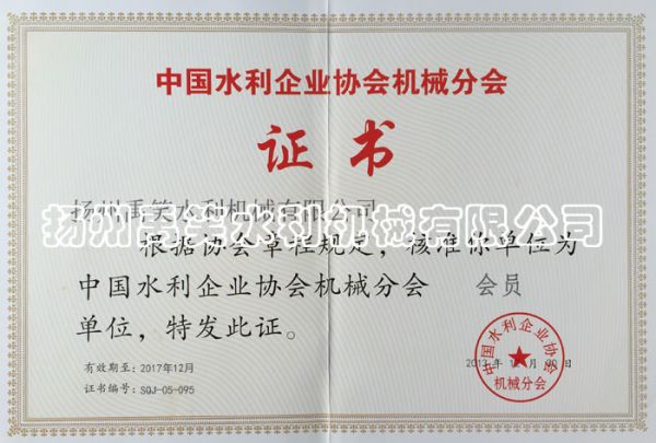 中国水利企业协会机械分会证书