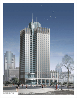 详细摘要: 杭州海华广场综合商务办公大楼将拟建一座以办公为主,集商务、餐饮、娱乐和购物等多项功能为一体的大型、综合型、现代化的商级商务楼。大楼为框剪二十七层,位于杭州市艮山路与建国路交界口,总建筑面积41000多平方米。