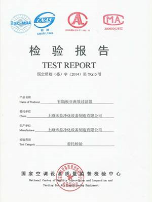 无隔板高效空气过滤器检验报告